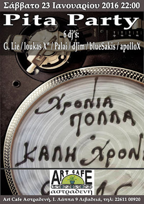 To Art Cafe Αστραδενή σας προσκαλεί το Σάββατο 23 Ιανουαρίου 2016 στις 22:00 στην κοπή της πρωτοχρονιάτικης πίτας για να ανταλλάξουμε ευχές για το 2016 μα κυρίως για να διασκεδάσουμε.