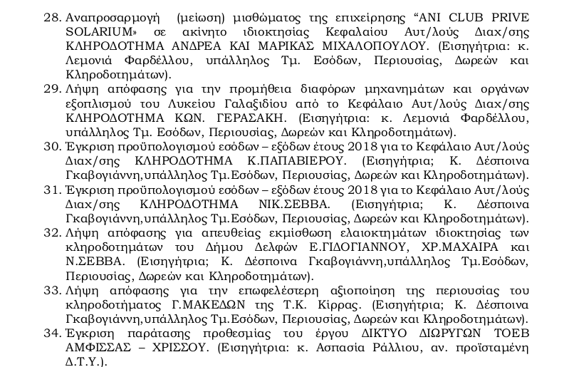 Παρακαλούμε όπως την 18 η Δεκεμβρίου 2017, ημέρα Δευτέρα και ώρα 18.00 ́ προσέλθετε στην Άμφισσα και στην ισόγεια αίθουσα του ΔΗΜΟΤΙΚΟΥ ΚΑΤΑΣΤΗΜΑΤΟΣ (αίθουσα Δημοτικού Συμβουλίου), πλατεία Κεχαγιά, σε δημόσια συνεδρίαση, με θέματα: