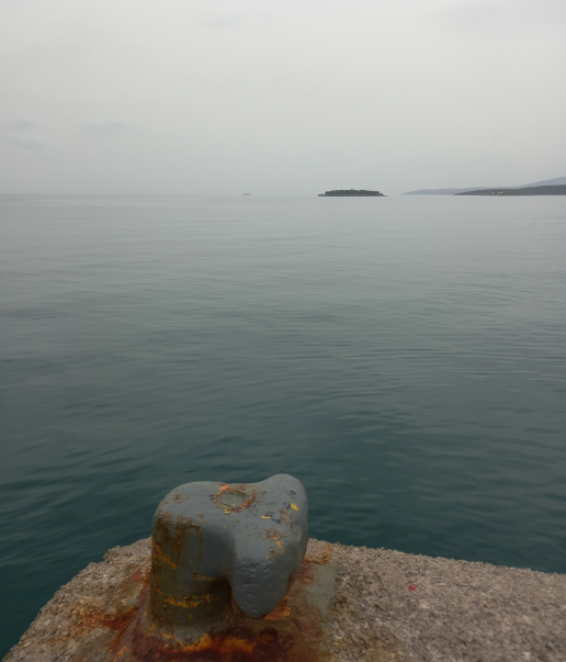 "Παράξενη ημέρα η σημερινή. Θολή κι ανήλια, υγρή, γκριζωπή και με άπνοια. Με τον ορίζοντα με το ζόρι να φτάνει στον Μακρανικόλα, ενώ κατά τον νότο, η θάλασσα νάχει γίνει ένα με τον ουρανό. Και τον Μωριά, νάχει εξαφανιστεί πιό πίσω απ' το "Μουλεμένο".